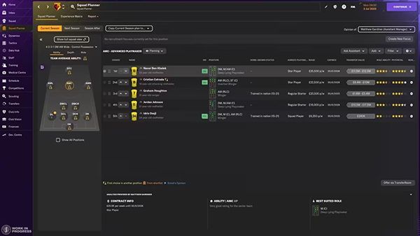 这项功能与俱乐部的阵容规划员非常相似,您可以借助它来评估球员的战术适应性和担任该角色的能力,并就阵容选择做出明智决策。