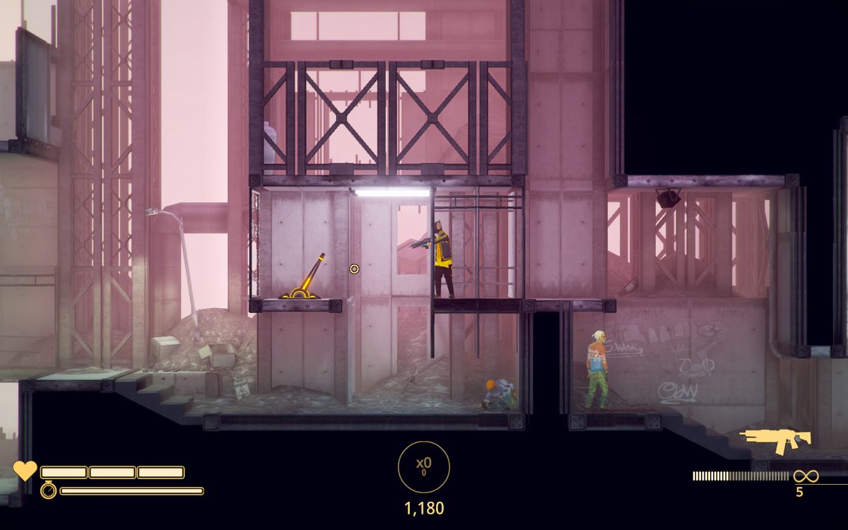 游戏采用2.5D卡通渲染画风,流畅的逐帧动作动画,让每一个翻滚、射击、击杀都极具观赏性
