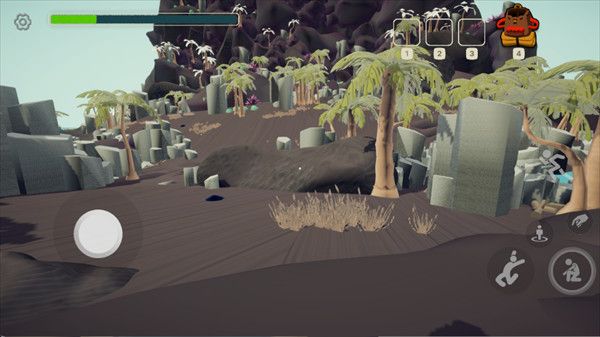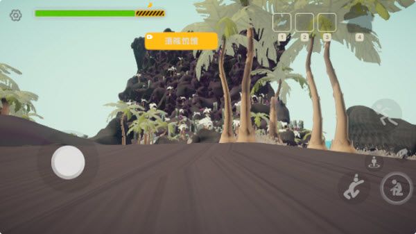 1、使用虚拟摇杆控制角色移动,滑动屏幕可以控制视角,点击屏幕上的跑步图标进行冲刺