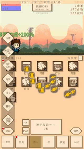 在一段时间等待后,将食物和饮料的量达到1w以后开始打boss(等不了的可以快速用加速度过),可以打2-3次然后换星球往上打
