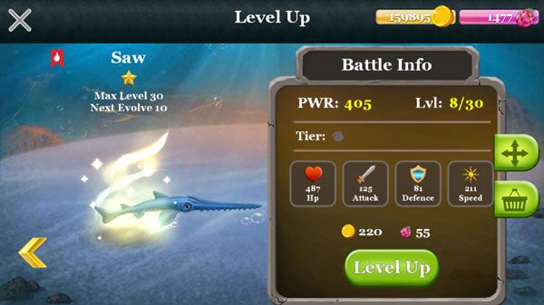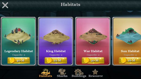 3、完成50个任务,寻找宝物取得金币与宝石,用来升级你的鲨鱼或者购买特殊救生道具!
