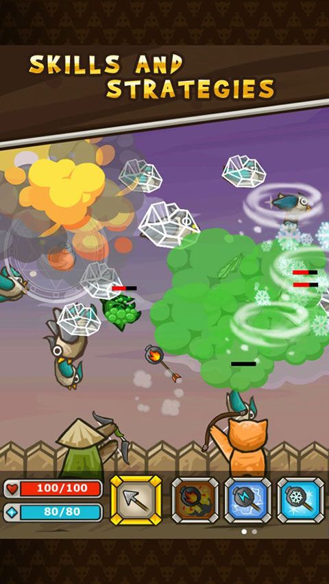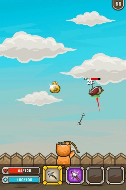 猫射手官方版是一款趣味射击小游戏,英文名叫ArcherCat,玩家将以一只猫咪的视角,来到这个世界,在游戏中,魔女带领着被诅咒的鸟儿们来进攻村庄,而我们作为猫射手,要做的就是把这些鸟儿全部击落并且赶走他们,游戏的操作方式也非常的简单,需要我们点击空中的小鸟就可以了,当我们成功通关后,能获得经验和货币的奖励,经验足够时,玩家的等级就会提升,然后你就会获得技能点,你可以将它分配到任意属性上面,以此来强化自身的战斗力,我们的敌人也会随着游戏的进程慢慢变强,我们需要不断的发育,换上合适的武器和装备,才能轻松通关。游戏整体来说玩法还是比较有趣的,而特殊的加点机制也让玩家们不断的开发出全新的玩法,是一款值得大家体验的好游戏,感兴趣的小伙伴们可以前来体验一下。