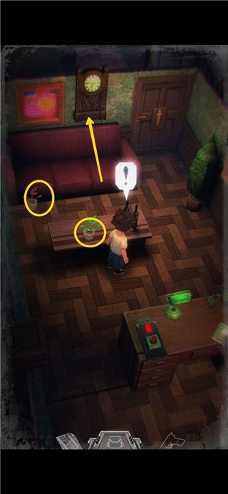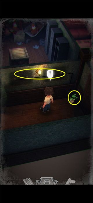 2、可交互的物品会有光点闪烁,走到可交互的物品前会显示惊叹号,出现图上圈的标识时点击屏幕任意处可以触发交互。