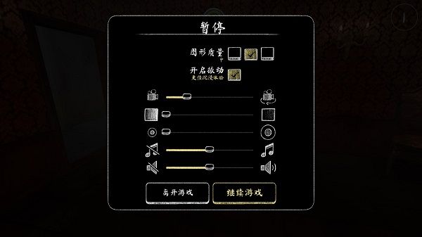 在游戏的左上角是游戏设置,在这里你可以修改图形质量,如低、中、高,甚至还能开启振动,获取更加沉浸体验,其他方面还有许多,如音量、音效控制,视角控制等等。