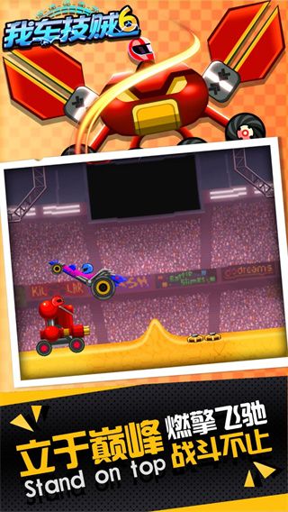 我车技贼6最新版是一款一对一竞技场格斗赛车游戏,游戏采用逼真的物理引擎打造,丰富的关卡和场景,简单的操作方式,玩家在游戏中可以选择上百辆赛车和道具加入挑战,选择不同的玩法模式完成任务,玩家需要灵活的使用地形和技巧击败你的对手赢得胜利。玩家在游戏中操作赛车进行激烈碰撞,只要赛车触碰到对方的头部就可以获得比赛胜利,1分钟一局,玩法火爆有趣,简直停不下来。