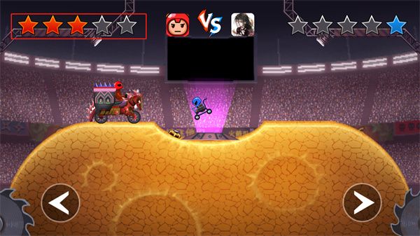 我车技贼6游戏操作简单,玩家可以点击屏幕,再点击开始游戏消耗一张入场券进入游戏游玩,游戏中玩家可以点击游戏两边的按键来进行移动,玩家需要撞击对方的头部即可加一颗星,玩家需要先到达5颗即可赢得胜利,游戏胜利后游戏还会为玩家发放丰富的奖励。在游戏中玩家将与自己的战车在赛场上与随机匹配的对手展开无限的碰撞,在赛场上使用各种武器与技能将其他参赛选手全部淘汰出局成为比赛的冠军获取比赛的胜利。还在等什么,有兴趣的玩家快来下载我车技贼6游戏畅玩一番吧!
