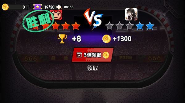 3、游戏中玩家需要撞击对方的头部即可获胜,获胜可加一颗星;