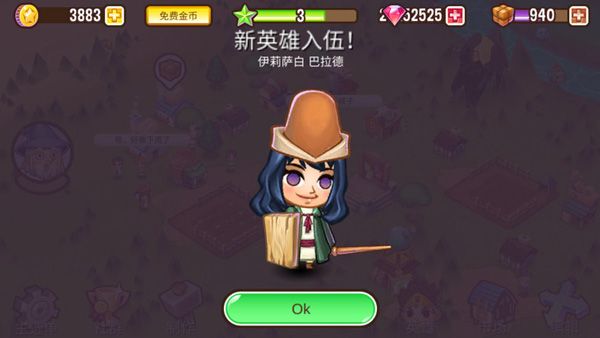 探险部分主要是由城镇吸引的英雄们进行完成,点击英雄选项可以看到玩家现有的英雄人物。点击更多装备可以为英雄购买武器、护盾、铠甲或帽子,但是仅能够购买宝箱,换句话说玩家并不能确定自己购买的会是什么样的装备,具有一定的随机性,surprise~点击英雄可以对英雄的装备进行佩戴和升级,也可以由玩家自定义来为英雄进行装扮,英雄的装备越高级,攻击力和血量就越高。