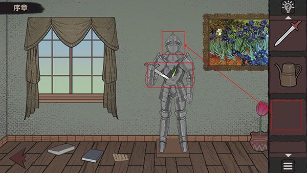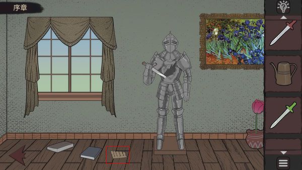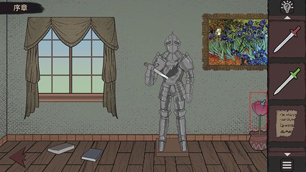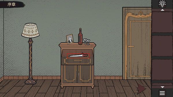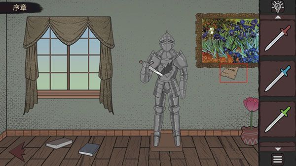 1、首先在第一个场景,打开抽屉拿到红色手柄剑;