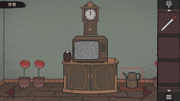 2、点击切换到右边场景,拿到地上的浇花壶;