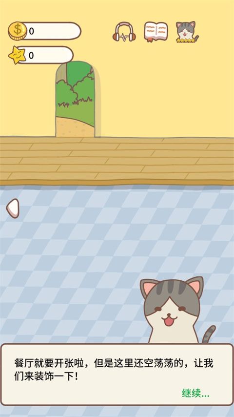 1、首先进入猫咪餐厅2官方版,这里会交代游戏剧情,需要救治这个受伤的小猫;