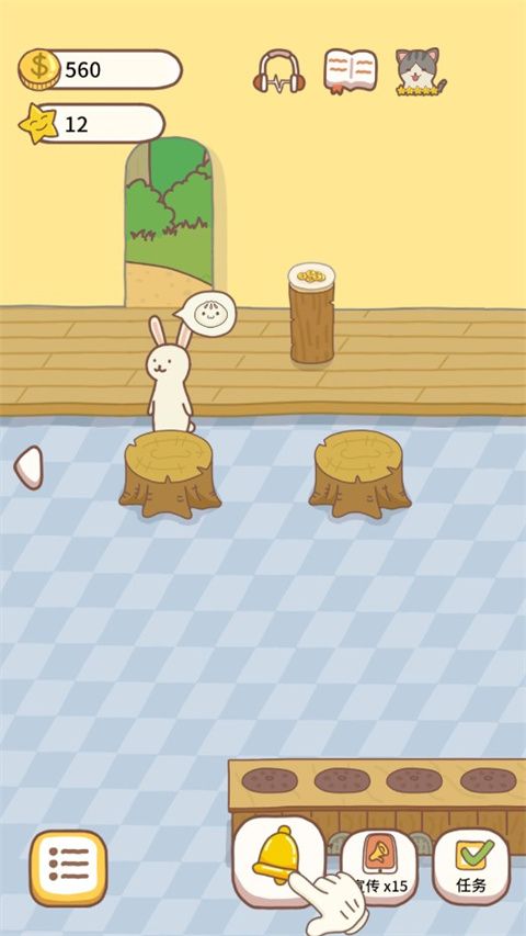 9、如果希望来更多顾客,我们要做一些宣传,点击这个小铃铛来招揽顾客,连续点击宣传按钮可以招揽客人。还可以通过大酬宾来招揽更多顾客;
