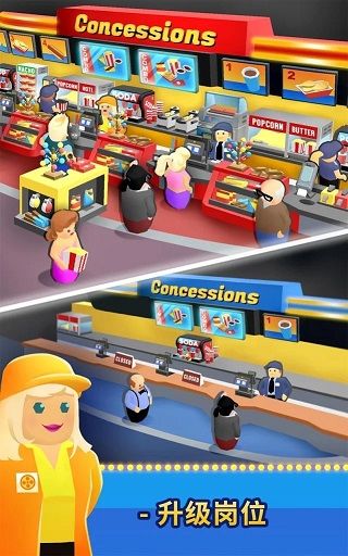 影院经理手游最新版也叫做Box Office Tycoon,是由Hothead Games推出的一款放置模拟经营游戏,在游戏秉承了放置游戏的硬朗卡通画风,游戏中的各种造型细腻而真实,都为玩家带来了极大的乐趣。与此同时,游戏内玩家将从经营一家小影院开始,通过稳步前行,最终打造属于自己的高级电影院。为了游戏的真实性与可玩性,影院经理游戏最新版当中除了常见的沙发、客厅、售票机、停车场等常见设施以外,还加入了细节满满的爆米花、可爱和歌厅等等,从影院多种细节的设置为顾客带来了温馨便利舒适的服务。关于玩法而言,大到开启新的影院建筑,小到提升爆米花的品质以及观影座椅的舒适度,共有数十项可供玩家升级的属性进行提升,每种提升都将为影院带来巨大收益。如果你是经营模拟游戏的爱好者,如果你想体验这别漾的游戏题材,还在等什么呢?相信你无法抵挡Box Office Tycoon的诱惑力,快来下载体验吧!