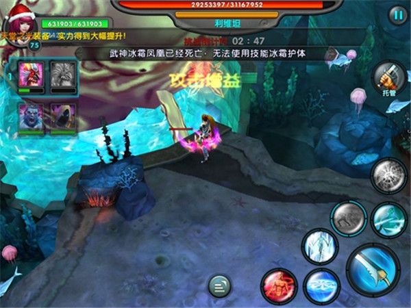 BOSS之前有3个小BOSS,第一个为拿着大刀的红色鱼人,这个鱼人死后会出第二、三个小BOSS是拿着叉子会跳来跳去的鱼人。这小BOSS一出来就不要管小怪了要尽快击杀,有多快杀多快。他们存活越久对武神的威胁越大。大刀鱼人可以用掉一个沉默,然后海洋小骚年一直普攻冰住,杀掉很容易。这个鱼人死后马上出来后两个拿叉子的鱼人小BOSS,等他们出来跑到边上,这个时候输出1、2号位置的小伙伴切第二组武神,这个时候全力保护汉克,这两个小BOSS可以一戳戳死三个汉克。这两个鱼人死后大BOSS就出来了。输出1、2在BOSS出来后马上变身汉克切回第一组武神,各种殴打BOSS,而海洋小骚年需要无限普攻BOSS其他什么也不要干,技能别甩,无限普攻。这就是海洋的任务(打完之后伤害总量最低,但是最低的海洋骚年,你就是干翻BOSS的战略点,以后你就是抢手货)。输出2需要与海洋小骚年站的比较近,要互相照应,被泡泡圈到要马上帮忙解除,海洋小骚年不能死,一死就没办法过了。除非海洋小骚年位置上有触手和毒(有这两个东西就移动到输出2一起),其他任何时间不要移动专心无限普攻。在最后还剩1分30秒左右输出1、2需要再次切出汉克再变身一次,如果需要的话。基本上这样就可以打过了。