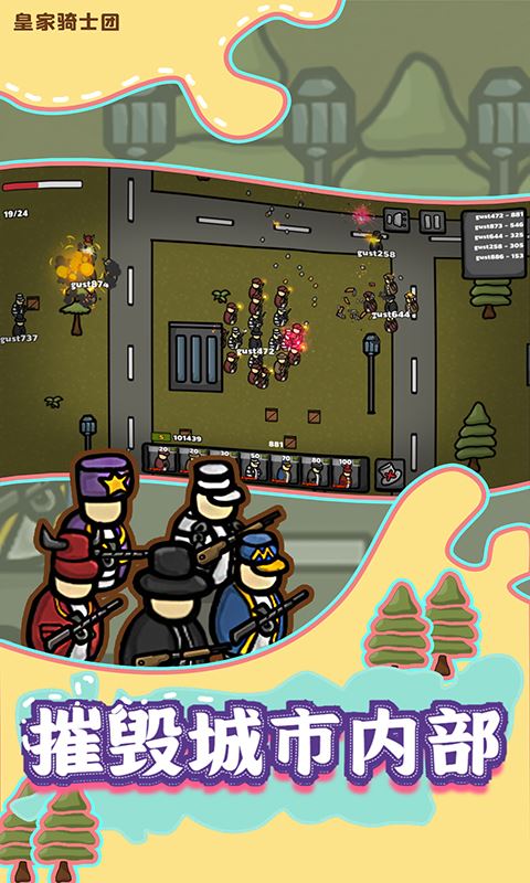 皇家骑士团是一款超级好玩简单的休闲游戏,模拟角色在城市中争取战斗在一条线上,雇佣一名保镖,每个都有不同的衣服和武器。 摧毁城市内部的收入并积累积分,io游戏风格。
