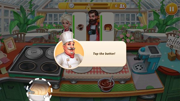4、介绍完餐厅后,点击绿色箭头开始你的第一关。