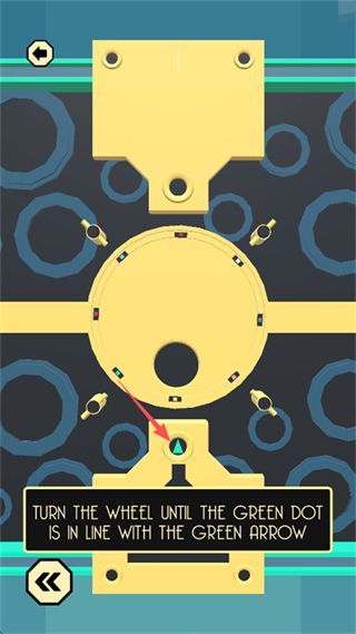 8、观察上下左右四个方向的“颜色对应方向”,并通过点击屏幕中间的“黄圆形标识”控制大型的四色方块,颜色方向对应“四周的小颜色方向”。