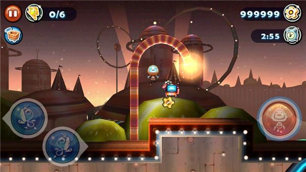 3、这个游戏的操作是屏幕虚拟按键,这样可以完成前进,后退,跳跃,还有隐藏的抓取按钮。可爱的造型机器人科迪,在游戏中需要找到能量,找到齿轮,这样才可以高分过关。