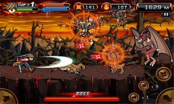 各种动作跑酷游戏相信是不少小伙伴们的最爱,那在这里就为大家带来一款非常经典的角色扮演类动作跑酷游戏——魔界忍者2官方版。本站在其他方面和第一部的差别并不大,游戏拥有同样的操作方式和故事情节,在游戏中你的目的就是要打死怪物以及杀死BOSS并且使用各种道具来增强你的战斗力而且比前作新增了很多敌人和BOSS也提供了更多的武器和挑战。同时这款游戏的操作也是非常的简单,玩家将控制的角色会不停地往前跑,按下攻击键可以攻击,如果吃到飞镖后攻击会从用到攻击变成用飞镖远程攻击,而且按两下跳跃可以连跳长按攻击键可以蓄力攻击,此外游戏的画面感加强了许多,技能更加华丽,武器的选择也更多和自由。不仅如此,在游戏内玩家们还能够与全球游戏玩家进行挑战来争夺“忍者之神SS级别”的最高成就!