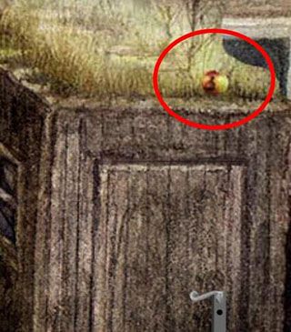 进行下一部分,点击自行车发现四位数密码,再次点击自行车旁边的画,可知画上的内容提示了密码,从左到右依次为画笔、啤酒瓶、青蛙和苹果