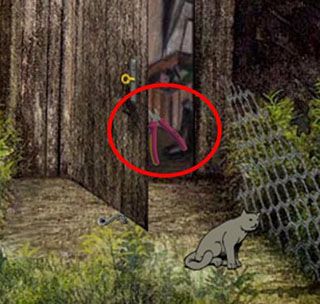 点击钥匙开门,用门内的钳子剪断铁丝网,过关