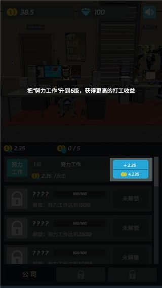 3、把努力工作升到6级,获得更高的打工收益;