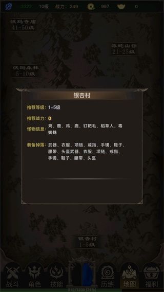 7、单击地图名字,你还能够看到这里可能会掉落的装备和怪物信息,帮助你更好的战斗;