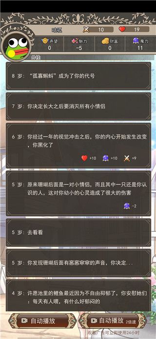 ③声望、魅力、金钱:建议集中培养一种(推荐声望、比魅力和金钱好堆太多。开宝箱时主意了,并不是看广告全选最好,如果你想堆声望,那就决不能选魅力和金钱,这会导致打boss时出现另外两个低伤害的选项),分别对应说教、电眼、收买三种攻击手段。(每种属性大约突破50左右才会出现这种攻击选项,属性越高伤害越高)