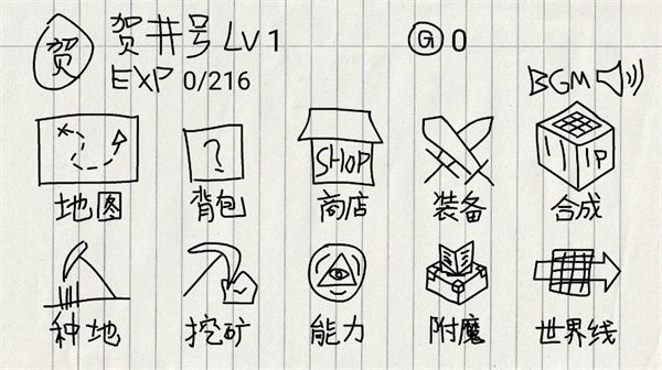 贺井号的奇妙冒险手机版是一款涂鸦风格的休闲游戏,游戏界面非常清爽简洁,这里没有任何的角色模型、场景地图,以及任何华丽的特效坐骑,因此游戏内所有的内容都是以文字的形式所呈现出来的,给玩家带来了全新的游戏体验。同时游戏操作十分简单,只需在崩坏的图画世界中自由的探索,然后打怪获得各种装备和道具,也可以通过冒险来获得战利品,不断的去壮大的实力即可。