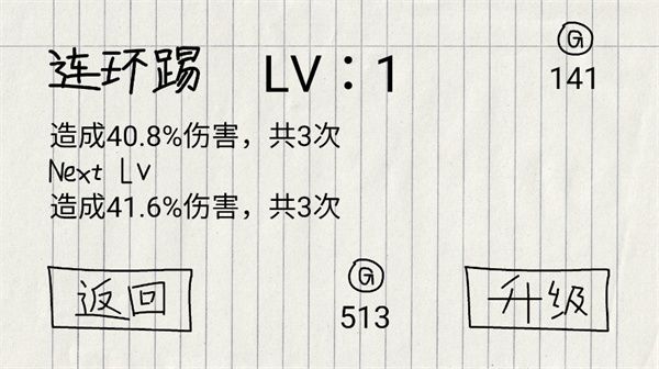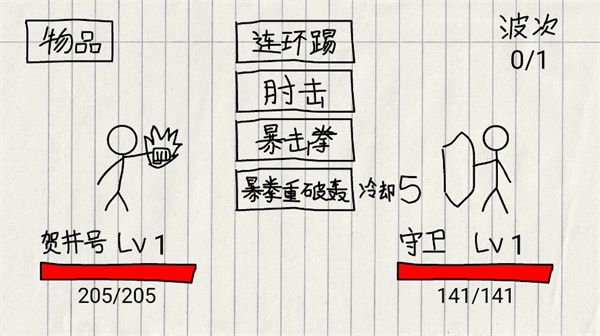3、你可以跟随着主线任务进行畅玩,1-10的时候,boss属性相较小怪大幅提升,我们需要在1-9刷至十级,顺便攒钱。(先肘后拳巡回打出,穿插大招)十级以后,买出装备。(商店购买的装备随人物等级的提升而提升)我是直接刷出了B级拳套,补全了上衣,然后打穿了boss。属性大致为99攻,51防,544血量的装备加成。