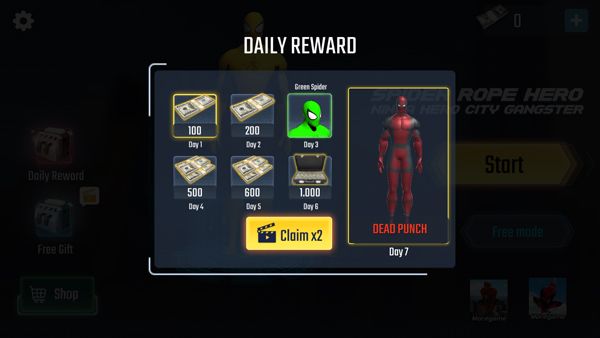1、打开蜘蛛侠英雄横扫纽约,点击屏幕开始,游戏内每日签到可领取钞票,以及角色奖励;