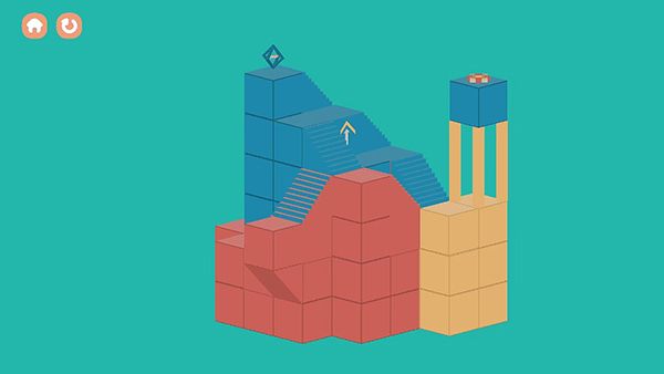 三维折叠手游正版是一款空间解密类游戏,玩家通过视觉差、二维视角和三维视角的切换下,寻找前往终点的正确道路。游戏在美术风格上和纪念碑谷很像,但是玩法上并不一样,游戏主要是以视觉错位为核心玩法,不能完全依靠视觉,还需要空间想象力、逻辑思维。游戏在三维视角下,只要脚下有连续的道路,点击道路方块,就能移动。如果在三维视角下,发现没有路可以走了,那么可以走到红色或蓝色的方块上,双击屏幕,切换到二维视角下。查看是否有红色/蓝色的方块与脚下的红色/蓝色的方块相连续,若有,点击红色/蓝色的方块就可走过去。即使这两个方块在三维视角下并不相连,也可以在二维视角下走过去。