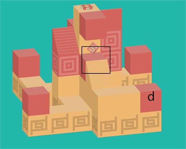 5、在d处切移动到高一层红色区域。