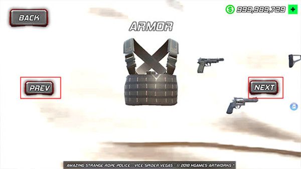 2、点击【PREV】和【NEXT】可以选择武器