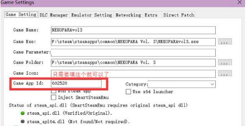 打开SSE,把需要运行的游戏exe拖到框里,然后填入Game App Id即可(这个请去steam商店查看,不知道什么是steam app id的请自行百度)