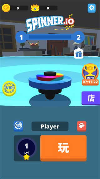 1、陀螺大作战游戏下方的“玩”就可开始游戏。