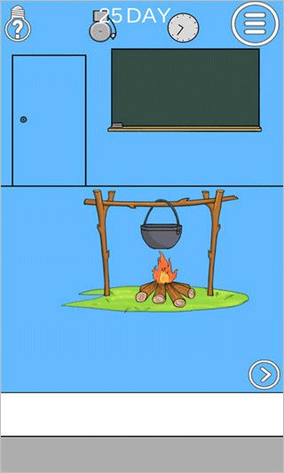 25、拿锅浇灭火堆,拿一块木棍右转塞鳄鱼嘴里。