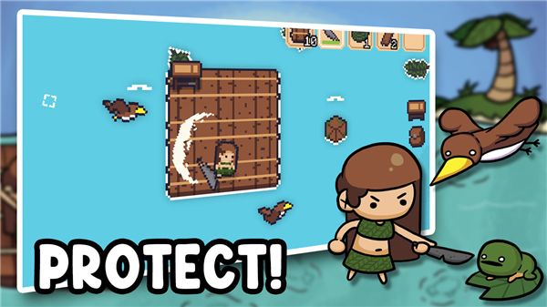木筏求生2D版手机版是一款像素风格的海上生存游戏,玩家将独自一个人前往在海洋中央的小木筏上,通过不断收集资源制造各种工具和扩大木筏面积,同时也要躲避来自可怕鳄鱼的攻击。在收集资源的时候是注意自己的生命值和饥饿值,尽可能长时间地生存下去。在游戏内,玩家不仅尅扩建自己的木筏,还可以建造更多坚固的结构保护自己,或者建造一些能提升舒适度的物品,比如床和壁炉等等,面对来自其他生物的威胁也不需要害怕,玩家可以制作各种武器来反击它们,包括刀、锤子、弓箭等等,各种强有力的道具,快到本站下载木筏求生2D版来一场刺激的海上冒险吧!