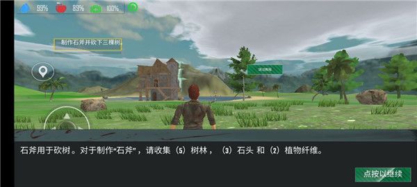 6、按照提示通石斧砍伐三棵树即可通关