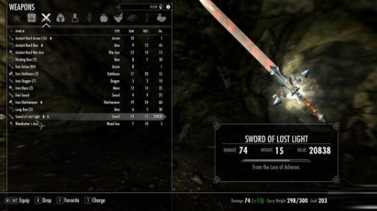 上古卷轴5:天际迷失之剑MOD,一把原型来自《阿瑟龙的召唤》中的剑,这把曾让亡者恐惧的迷失之剑如今落在泰姆瑞尔。你可以在Whiterun的Jarl王座房间的陈列柜中找到它,它已被标记为玩家所有,所以不会构成偷窃。锻造它需要奥术锻造和乌木锻造。