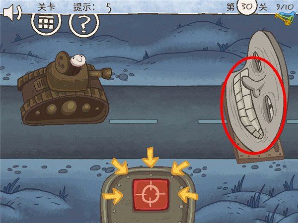 1、第一关:点击图片上的箭头,出来个坏笑的小人,就可以过关啦(不是按泡泡哦)。