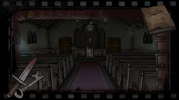 43、去教堂,把带血的刀子插入圣水之中,画面变为了黑白。