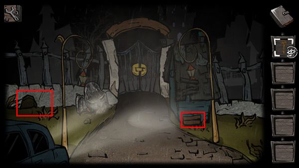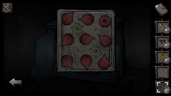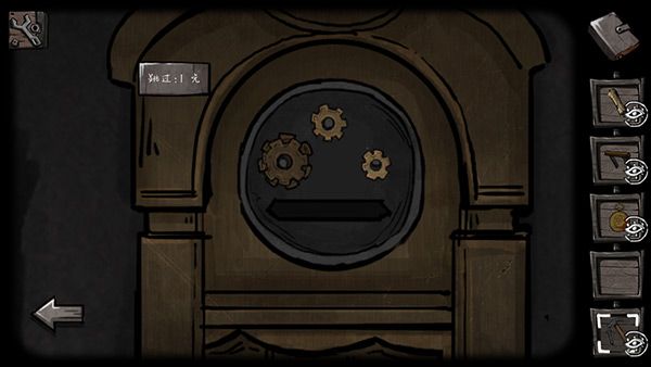 22、门上的符号略微眼熟,回到十字路走往前走,大铁门上给出的是外面四个的符号,而里面的符号就在密码锁上,按照对应的位置调整好。
