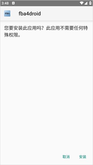 2、系统会提示需要安装名为fba4drioid的应用,点击安装即可。