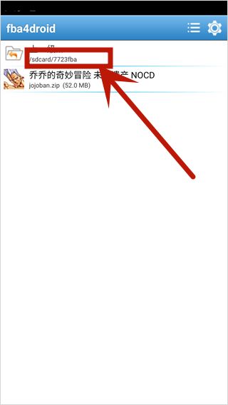3、进入fba4drioid后点击左上角的“返回上一级”,在目录中找到7723fba,可以看到乔乔的奇妙冒险未来遗产 NOCD的压缩包。