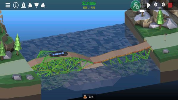 3、全新物理效果:游戏为玩家打造了一个自定义的物理引擎,对桥梁的物理细节进行优化,让玩家可以更准确地打造自己的桥梁。