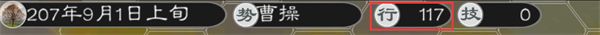 在屏幕的上方,“行”字就是行动力啦,行动力支持着你的军事以及内政行动,前期的行动力非常有限,比较珍贵,一定不要浪费!如果行动力没有了,则只能开摆等待下个回合开始了!