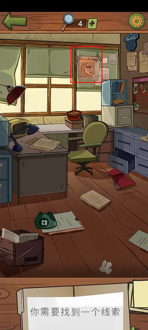 5、在这里同样是收集线索,如果遇到难题请点击放大镜,你会得到一个提示,需要注意的是屏幕上方的正中间有放大镜可使用的次数,请不要浪费机会哦。