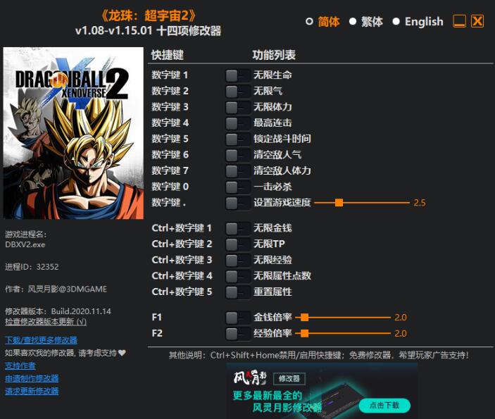 ☉ 本站提供的龙珠超宇宙2十四项修改器(无限生命/无限体力等) v1.08-v1.15.01 风灵月影版资源来源互联网,版权归该下载资源的合法拥有者所有。