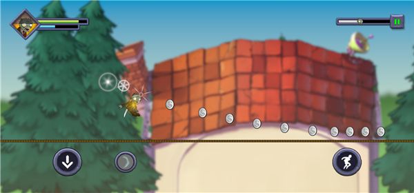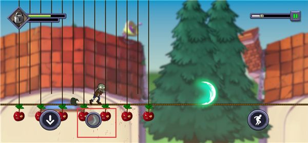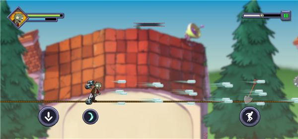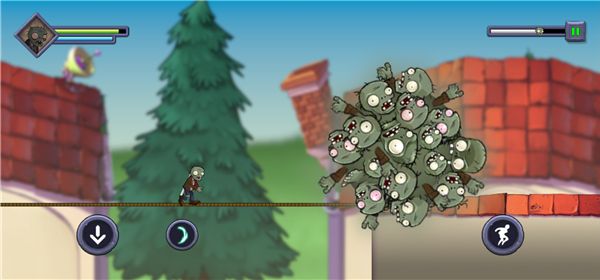 僵尸不能死手机版是《植物大战僵尸》的一款同人收集跑酷冒险闯关游戏,与《忍者必须死》玩法相似,玩家将操控僵尸在绳索上奔跑冒险,期间需要躲避大嘴花、铁锹等各种攻击,收集僵币,并尽量奔跑到关卡终点。游戏采用关卡制玩法,每关都有三星目标,玩家需使用跳跃、冲刺等操作躲避障碍,用武器消灭三叶草、樱桃炸弹等植物,还可释放大招扫清前方,完成目标夺得金奖杯。随着游戏关卡的深入,僵尸的速度会逐渐增加,各种植物的攻击能力也会上升。
